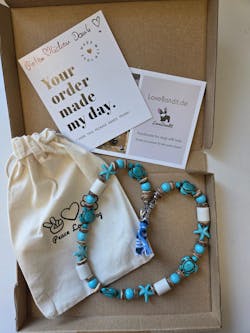 Alle meine Produkte, wie zum Beispiel EM Keramik Halsband, Bernsteinketten für Hunde oder Hundeloops stelle ich selbst mit viel Liebe und Leidenschaft aus hochwertigen Materialien her.