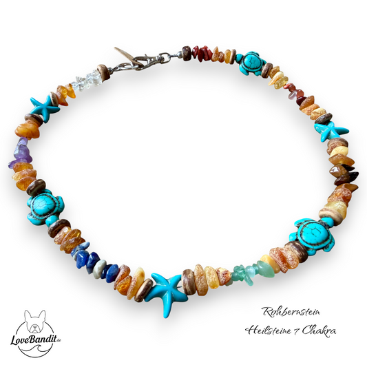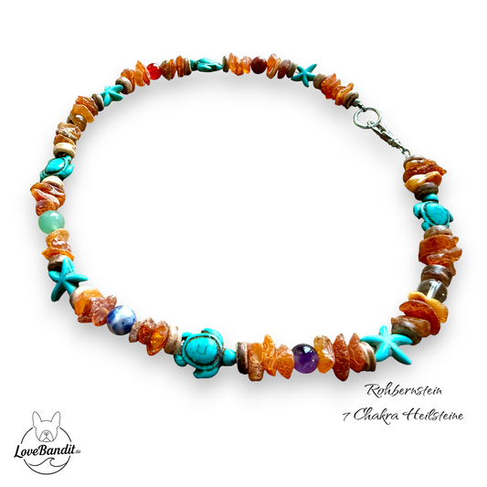 Bernstein-Halsband und 7 Chakra-Heilsteine für kleinere Hunde