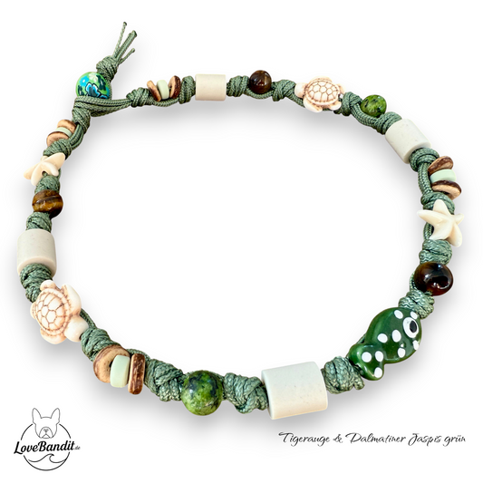 EM Keramik Heilsteinhalsband mit Tigerauge und grünem Jaspis