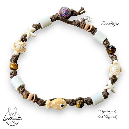 EM Keramik Halsband "Sandtiger" mit Tigerauge & Fisch