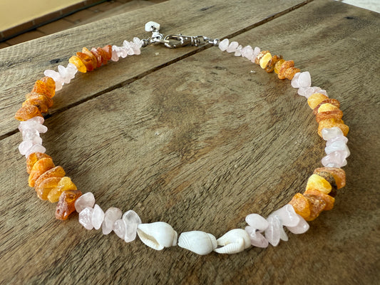 Bernsteinkette für kleinere Hunde mit Rosenquarz