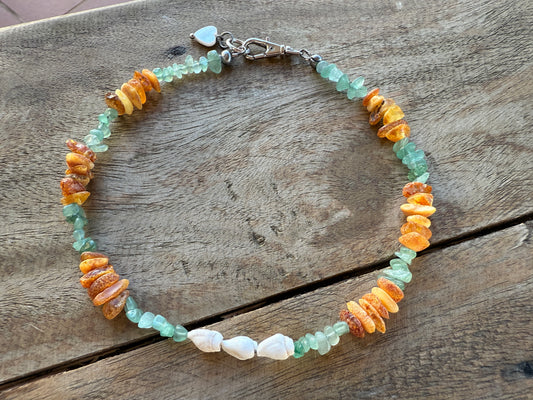 Bernsteinkette für kleinere Hunde mit Aventurin