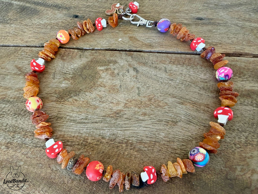 Bernsteinkette für Hunde – Fliegenpilz, Perlen - Zauberwald