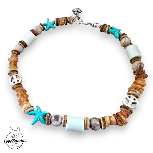 Bernsteinkette für Hunde mit EM Keramik, Schildkröten und Peace