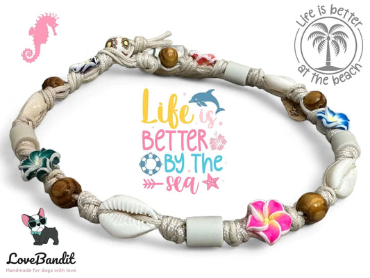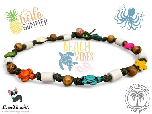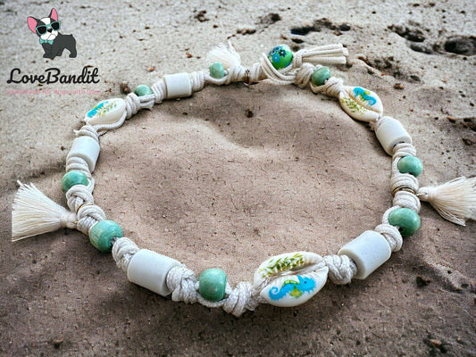 Doch bei LoveBandit geht es nicht nur um Funktion, sondern auch um Herz und Design: Jedes Halsband wird mit viel Liebe zum Detail gefertigt – ob im farbenfrohen Boho-Stil oder maritimem Surferlook mit Schildkröten, Muscheln, Peacezeichen, Hawaiiblümchen, Holzperlen oder Totenköpfen.