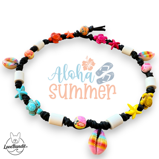 EM-Keramik Halsband Hawaiiblumen bunt Muscheln