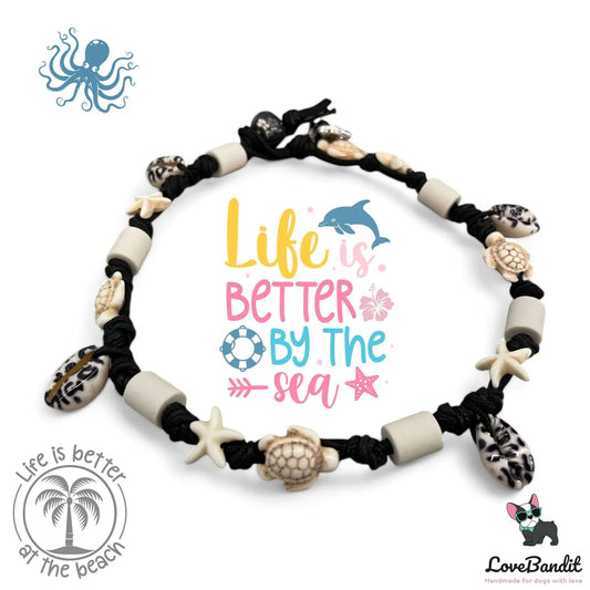 EM-Keramik Halsband Zeckenhalsband Muscheln Surf Dog