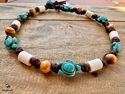 EM-Keramik Halsband Schildkröten Türkis Holzperlen