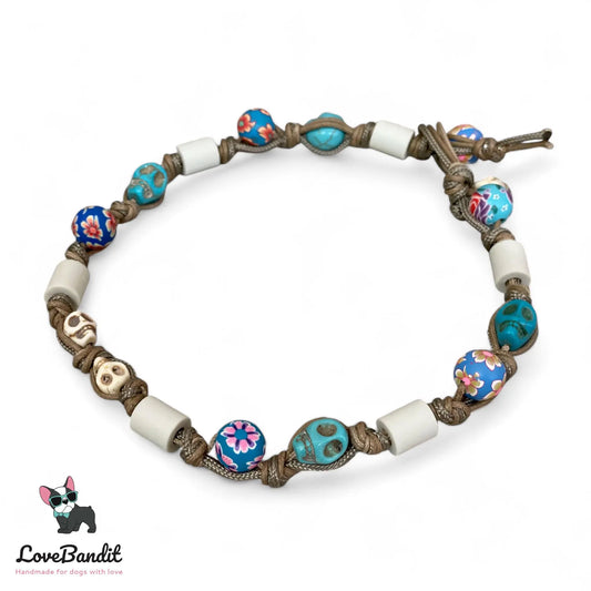 EM-Keramik Halsband Zeckenhalsband Sugar Skulls Türkis