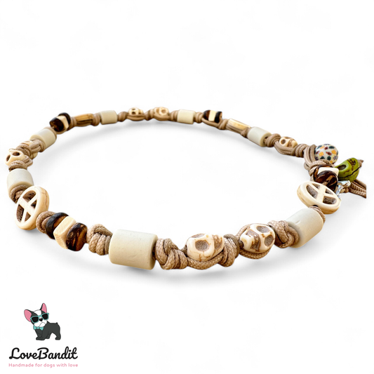 Doch bei LoveBandit geht es nicht nur um Funktion, sondern auch um Herz und Design: Jedes Halsband wird mit viel Liebe zum Detail gefertigt – ob im farbenfrohen Boho-Stil oder maritimem Surferlook mit Schildkröten, Muscheln, Peacezeichen, Hawaiiblümchen, Holzperlen oder Totenköpfen.