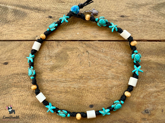 EM-Keramik Halsband Schwarz Blau Schildkröten Seesterne