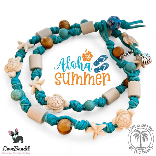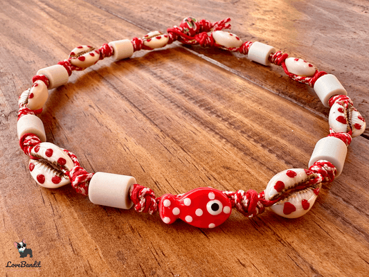 Doch bei LoveBandit geht es nicht nur um Funktion, sondern auch um Herz und Design: Jedes Halsband wird mit viel Liebe zum Detail gefertigt – ob im farbenfrohen Boho-Stil oder maritimem Surferlook mit Schildkröten, Muscheln, Peacezeichen, Hawaiiblümchen, Holzperlen oder Totenköpfen.