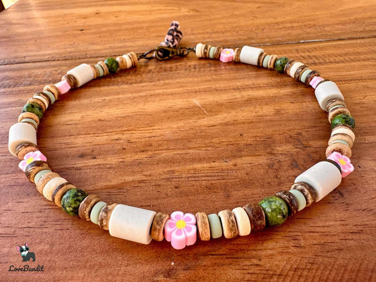 EM-Keramik Halsband Dalmatiner Jaspis Grün, Blümchen rosa