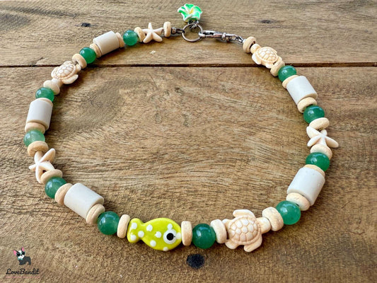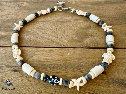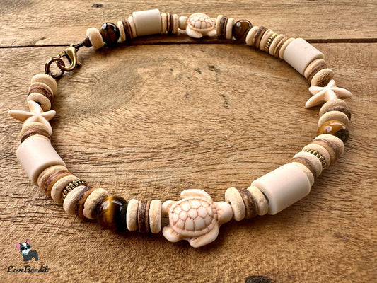 Heilstein Halsband für Hunde Tigerauge Schildkröten Seesterne