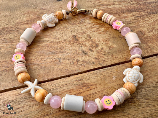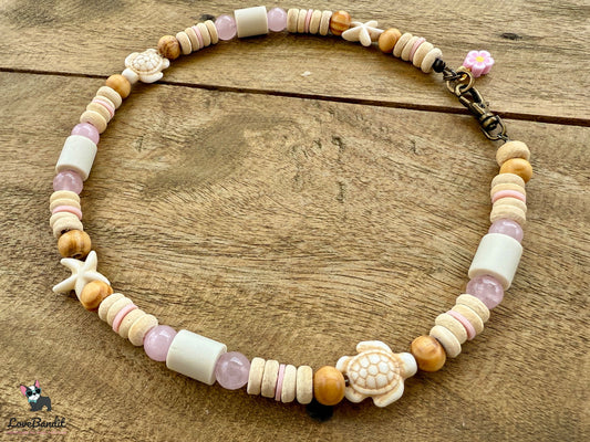 EM Keramik Heilstein Halsband Rosenquarz Schildkröten Seesterne