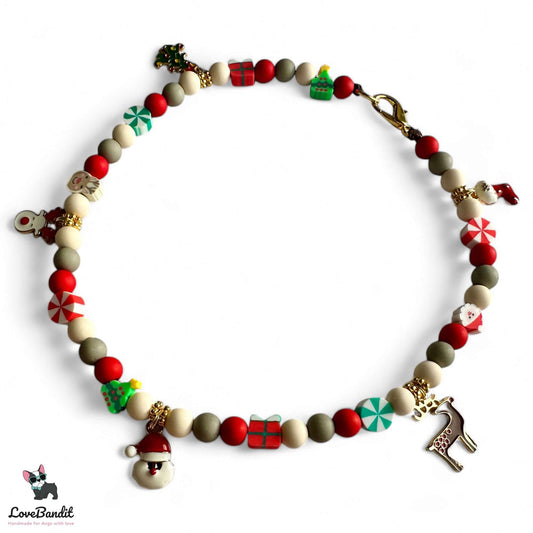 Weihnachtskette Schmuckkette Halsband für Hunde "Happy Xmas" - ohne EM Keramik