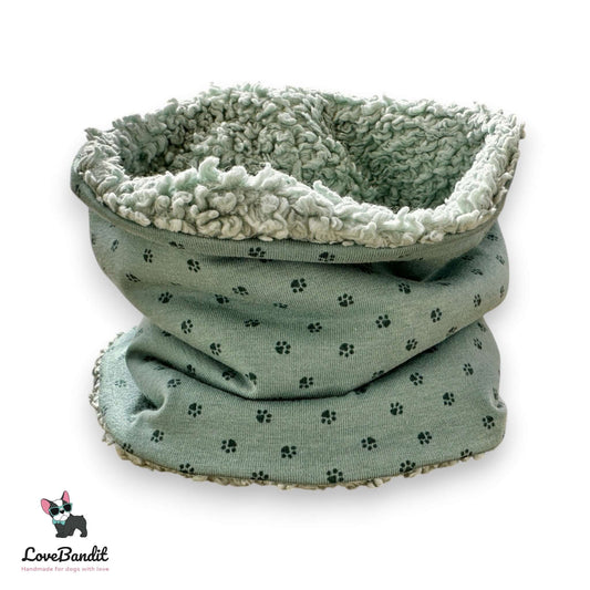 Hundeloop Hundeschal Pfötchen altgrün Fleece Teddyplüsch