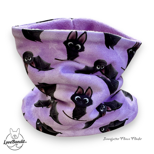 Hundeloop Hundeschal "Flieder Fledermaus" mit Fleece oder Teddyplüsch
