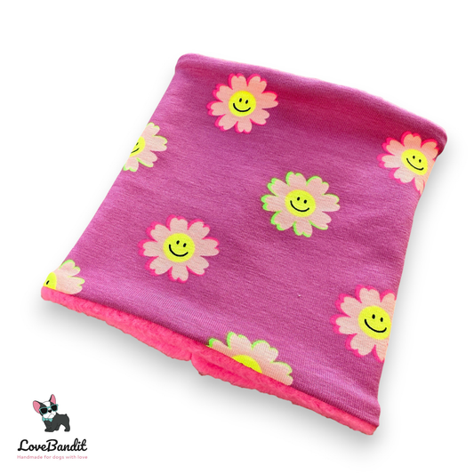 Hundeloop Hundeschal Smiley Flowers Fliederbeere Neon Fleece