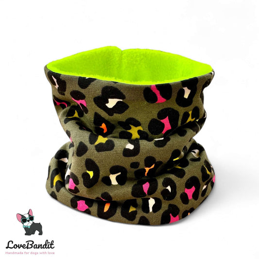 Hundeloop Hundeschal "Neo Leo oliv" Leopardenprint Neon Farbakzente