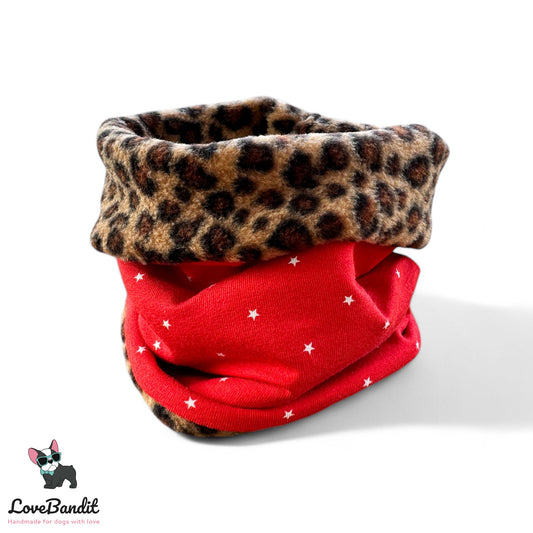 Hundeloop Hundeschal "Mini Sterne Leo rot" mit Leo Fleece