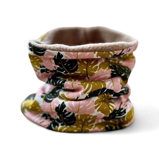 Hundeloop Hundeschal "Monstera Love" grün rosa Fleece oder Teddyplüsch