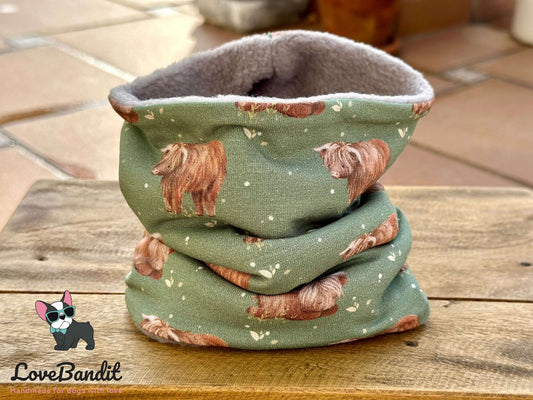 Hundeloop Hundeschal Hippiekühe Galloway Kühe altgrün