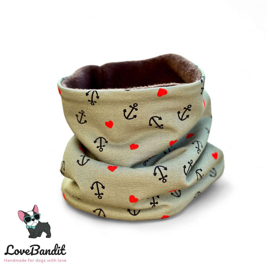 Hundeloop Hundeschal Kleine Anker beige Fleece Teddyplüsch