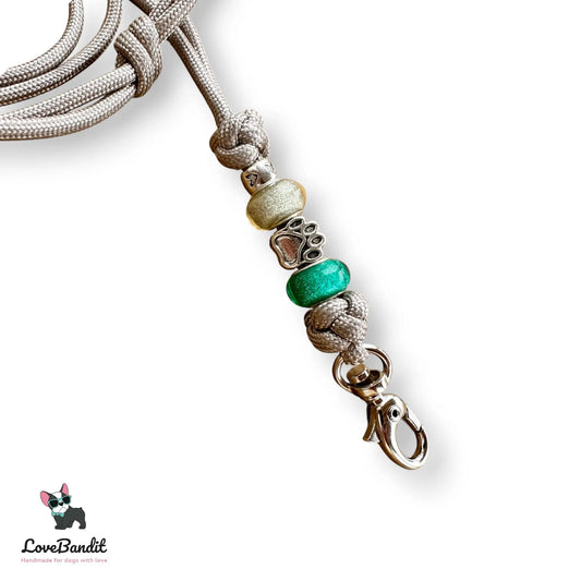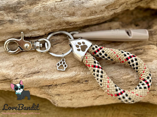 Versilberter Schlüsselanhänger Pfeifenband Pfote Tartan beige