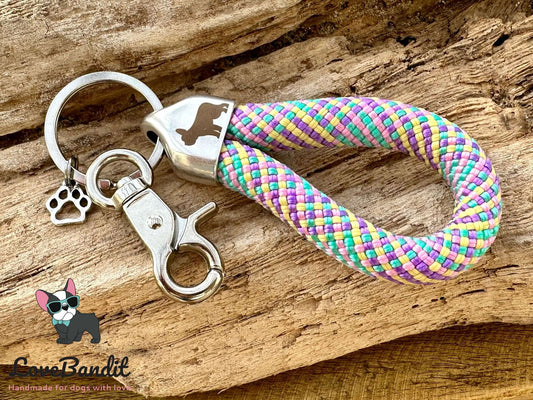 Versilberter Schlüsselanhänger Pfeifenband Frenchie