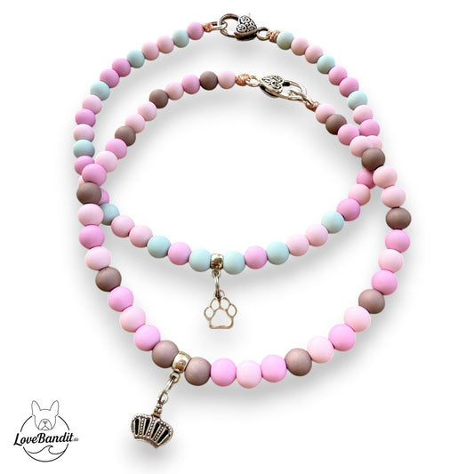 Leichte Perlenkette für Hunde Rosé Seagreen Lilac