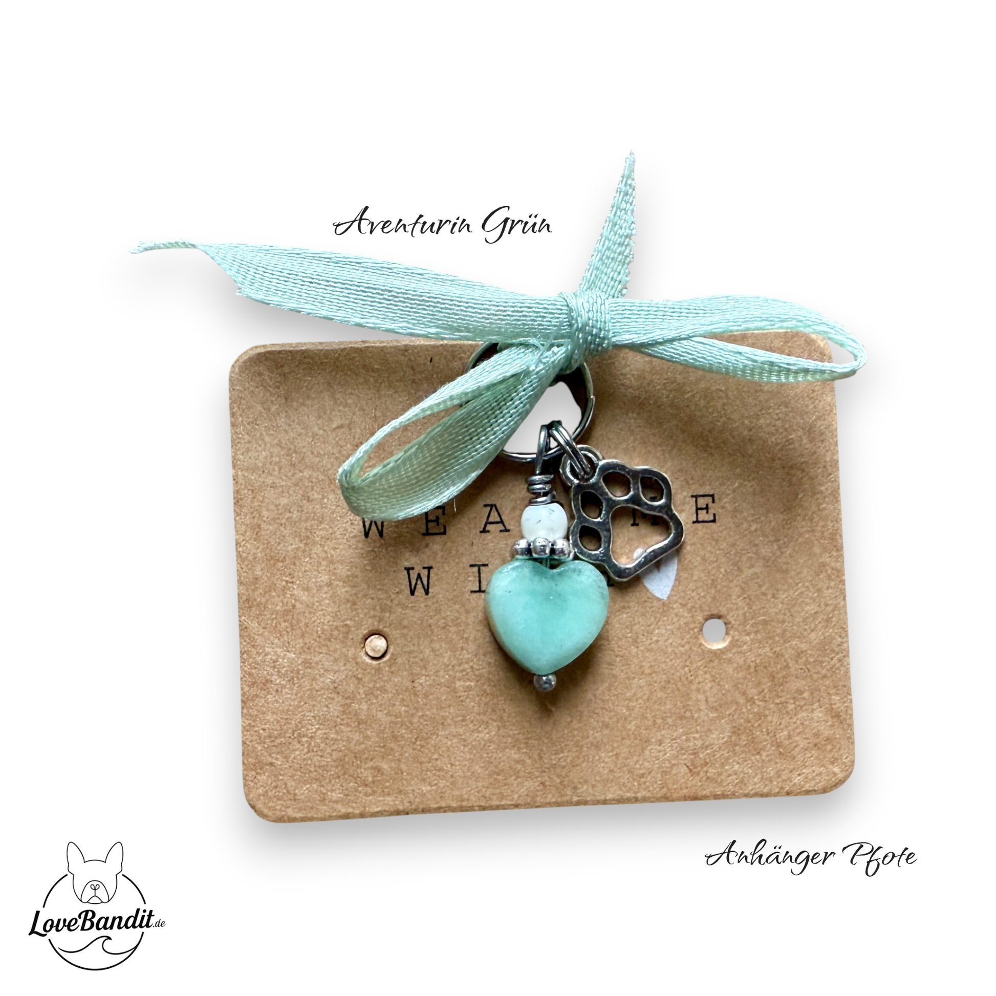 Das Herz aus grünem Aventurin steht für Ruhe, Ausgleich und Zuversicht. Als sanfter Begleiter am Hundehalsband kann er unterstützen, innere Spannungen zu lösen und ein harmonisches Gefühl zu fördern – besonders in neuen oder aufregenden Situationen.